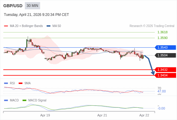 英镑/美元 当日内 : 看跌,在 1.3543 之下。