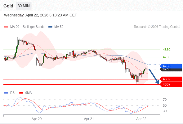 在 4753 之下,看跌,目标价位为 4692 ,然后为 4667 。