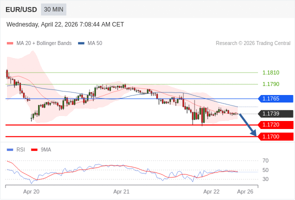 在 1.1765 之下,看跌,目标价位为 1.1720 ,然后为 1.1700 。