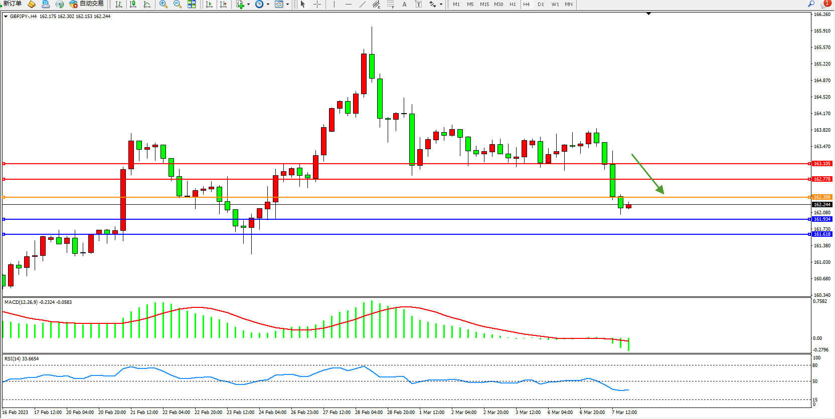 交易策略:162.398下方看跌,目标161.934 161.618
