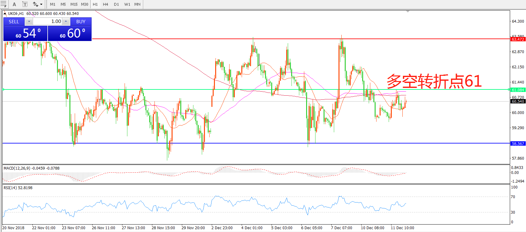 交易策略:在61.00之下看跌,目标58.00 55.00