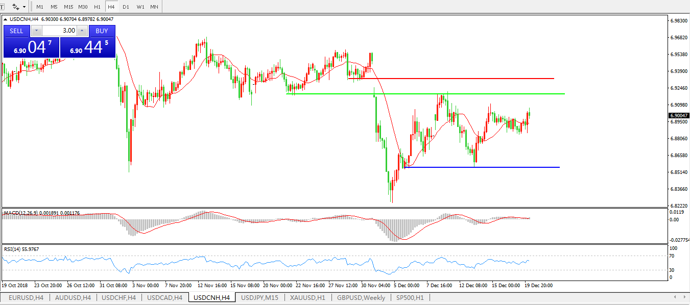 美元兑人民币USDCNH4小时图: