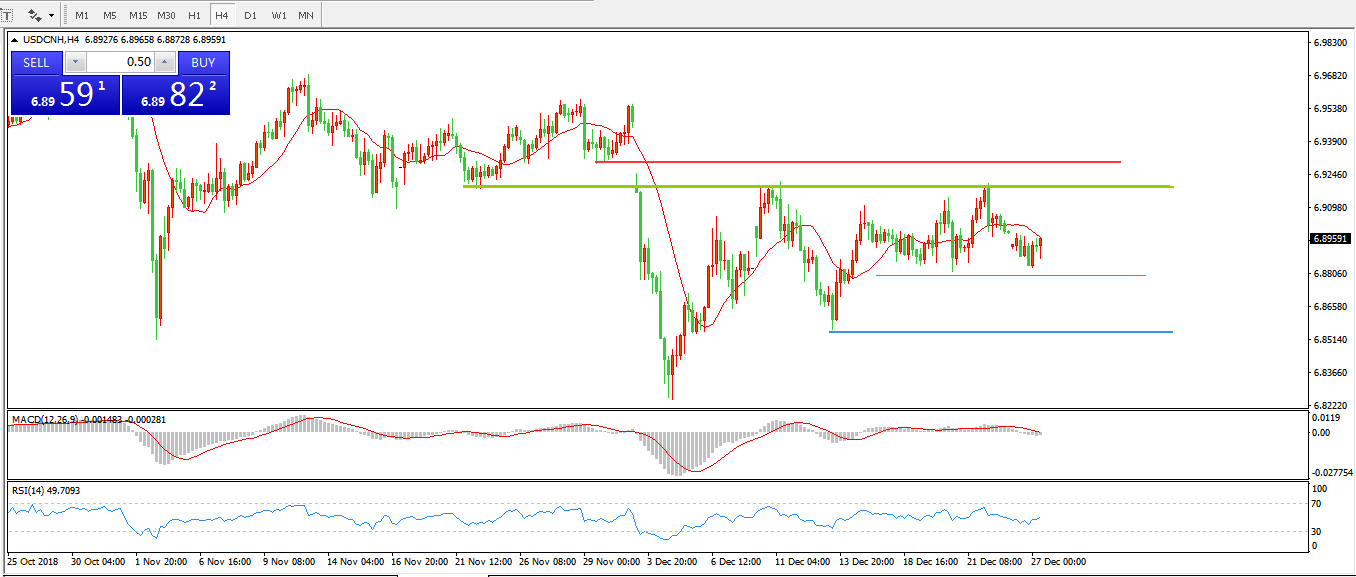 交易策略: 在6.9200之下,看跌,目标价位为6.8800,然后为 6.8545 。