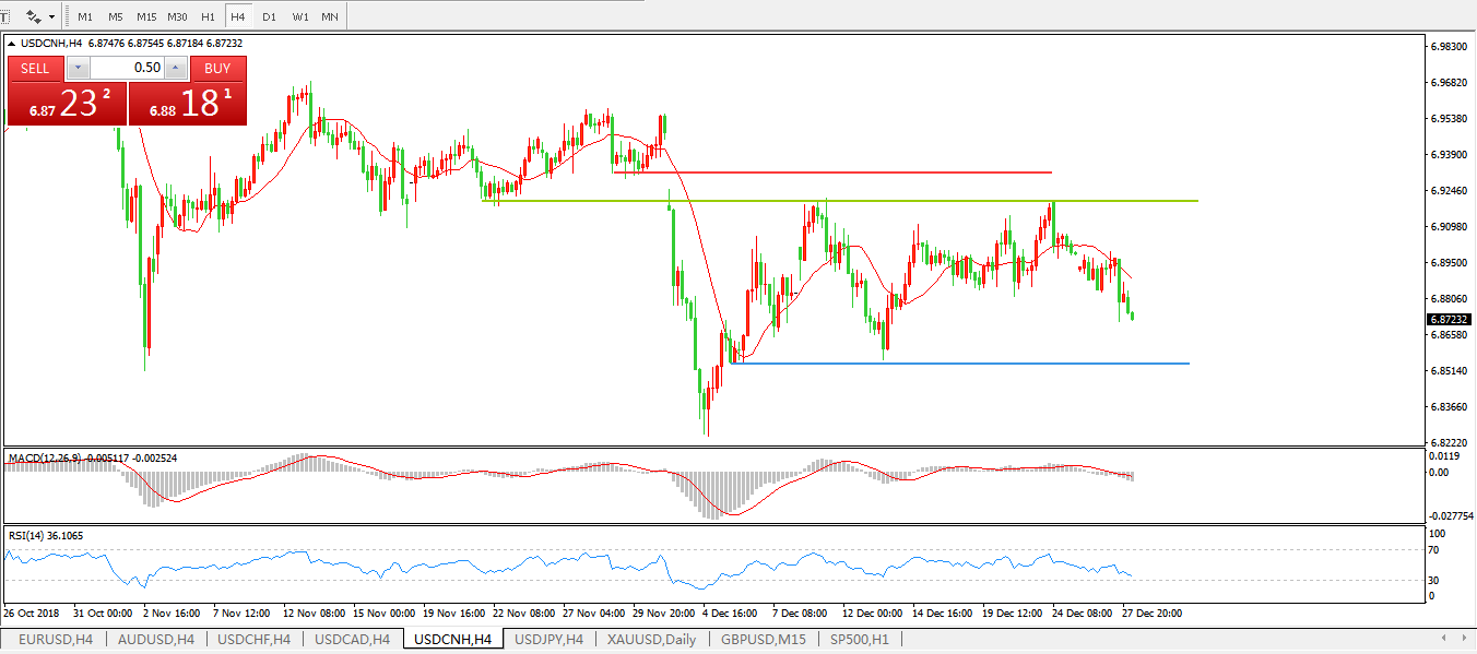 美元兑人民币USDCNH4小时图: