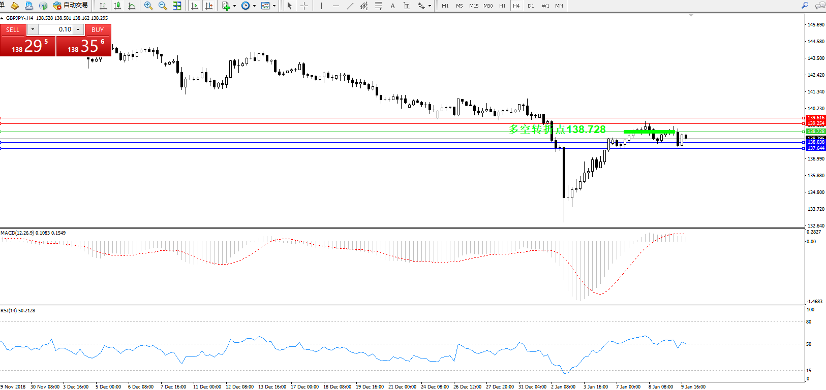 备选策略:138.728上方看涨,目标139.254、139.616