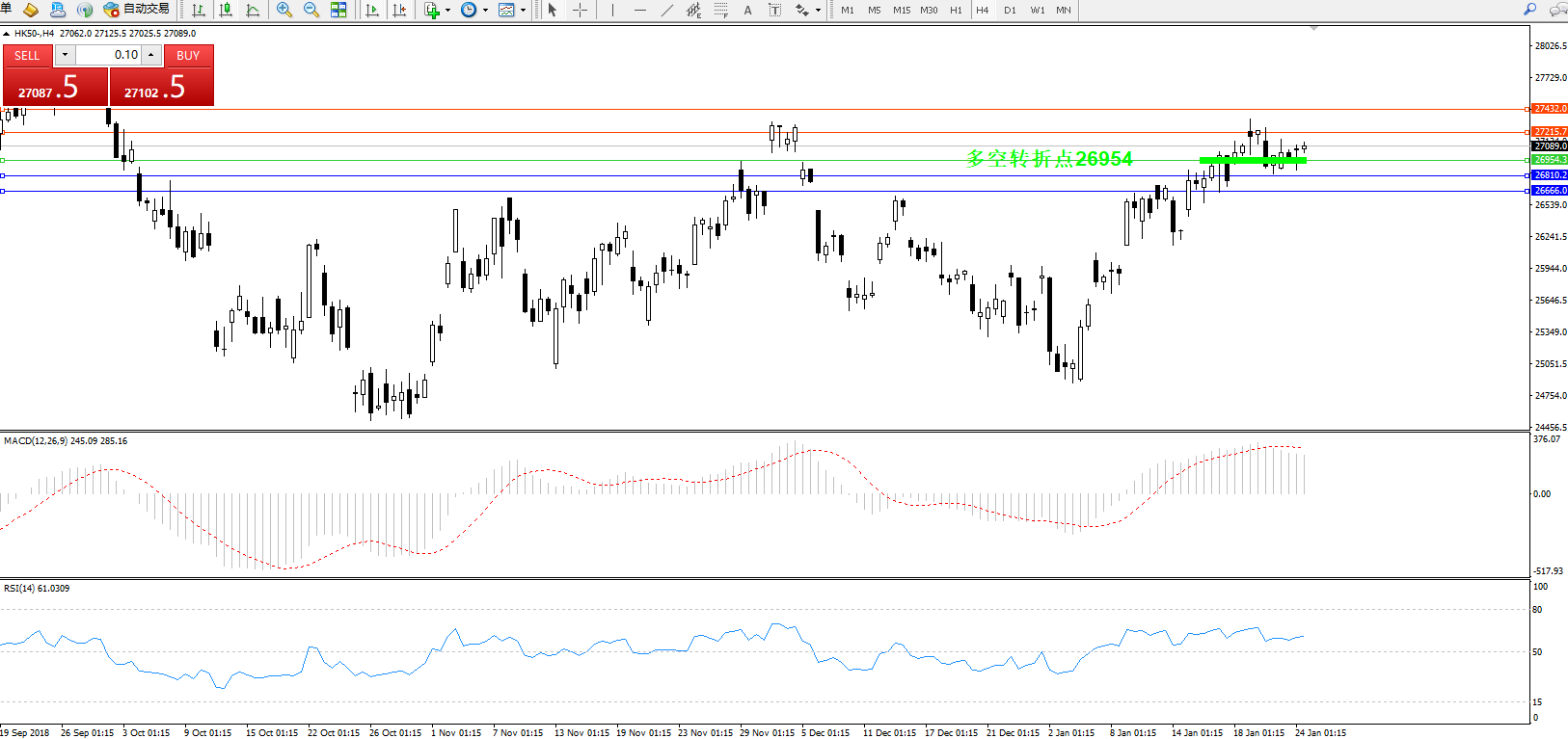 交易策略:26954上方看涨,目标27215、27432