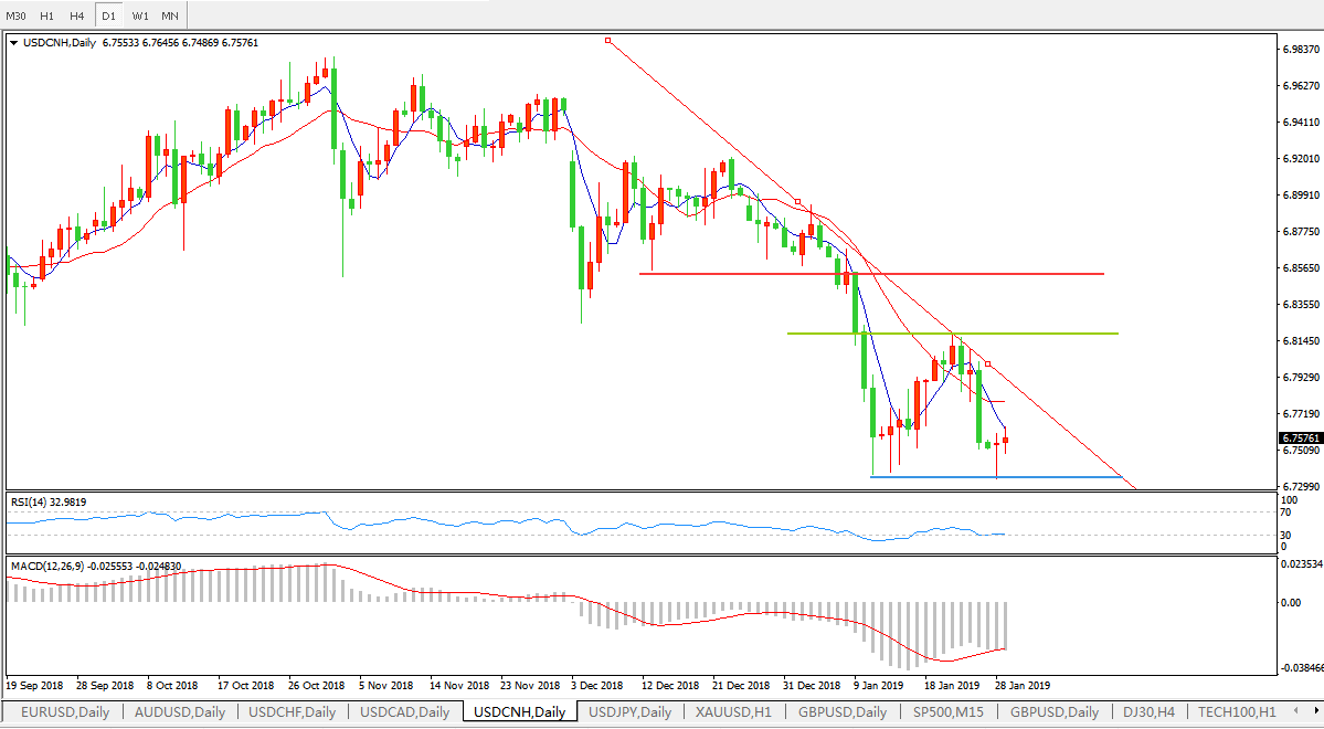 交易策略:6.8160下,看跌,目标价位为6.7350,然后为 6.7000