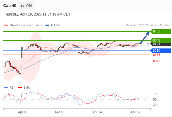 Cac 40 当日内: 在8210之上,看涨。