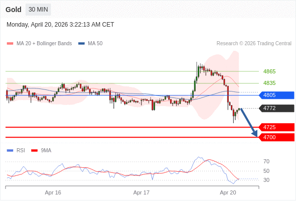 在 4805 之下,看跌,目标价位为 4725 ,然后为 4700 。