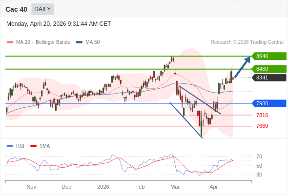 Cac 40 短线: 期待8460。